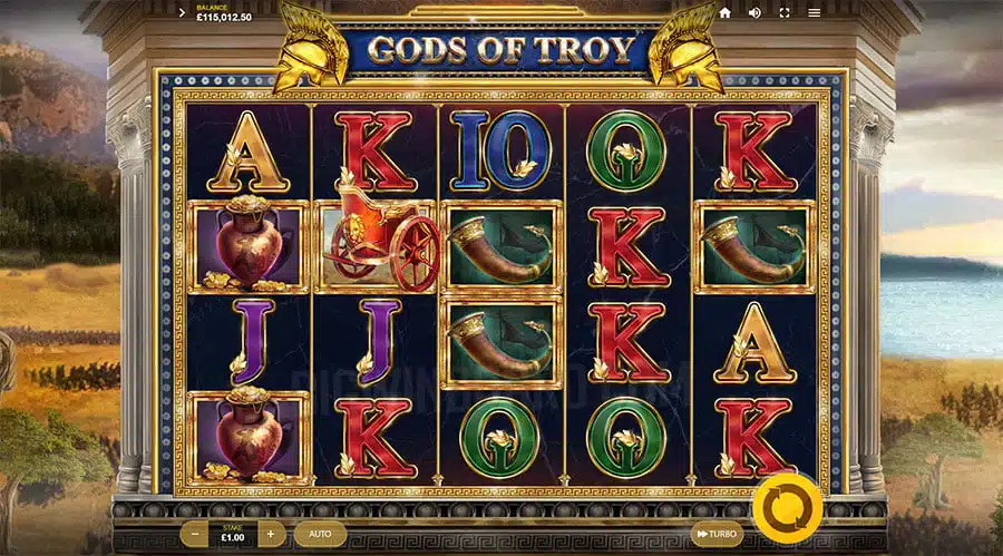 Gods Of Troy je vymakaný automat naložený tematikou starovekého Grécka, priam preteká jeho symbolizmom a zachytáva bojovný duch Sparťanov svojou hernou mechanikou. Každým pretočením môžeš získať symbol zlatého štítu, ktorý sa na konci každého 10 pretočenia zmení na „WILD SYMBOL“ a možno ti umožní mnohokrát znásobiť výhru. Opomínajúc vstavanú mechaniku voľných pretočení Spins Of Troy, to je len jedna z mnohých vymakaných herných mechaník tohto skvelého automatu!