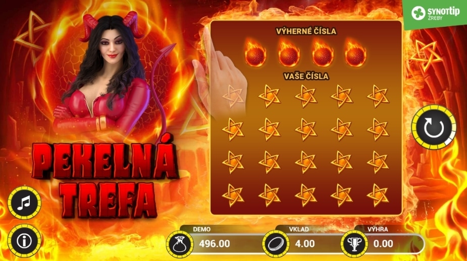Zaži poriadnu dávku napätia so žrebom Pekelná trefa od Synottipu, kde každé zotretie môže rozpútať pekelné šťastie. Za 4 € máš šancu trafiť hlavnú výhru až 75 000 € a získať výhru, ktorá ti poriadne rozhorúči deň. Viac