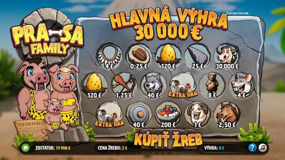 Pra-sa Family od Tiposu je veselý žreb za 2 €, s ktorým môžeš získať jackpot až 30 000 €. Jednoduchá hra plná šťastia a zábavy, ktorá ti môže priniesť rodinnú výhru snov! Viac