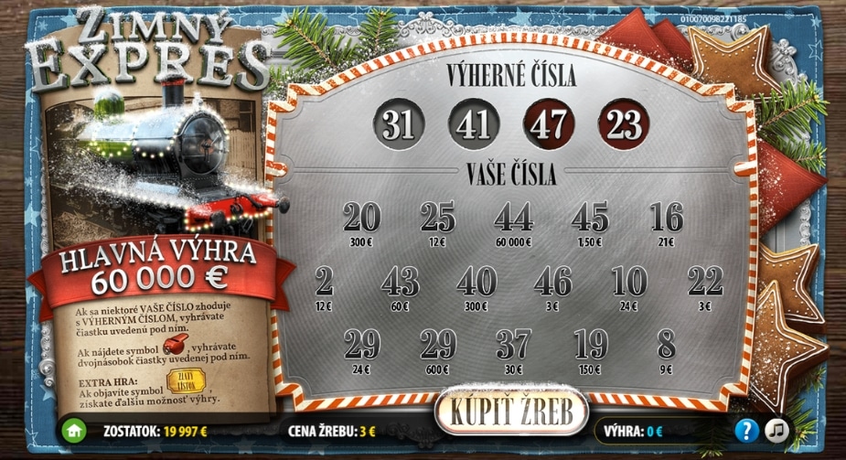 Stierací žreb Zimný expres prináša veľa zábavy s krásnou vianočnou tematikou a fantastickou hlavnou výhrou až 60 000 €! Viac