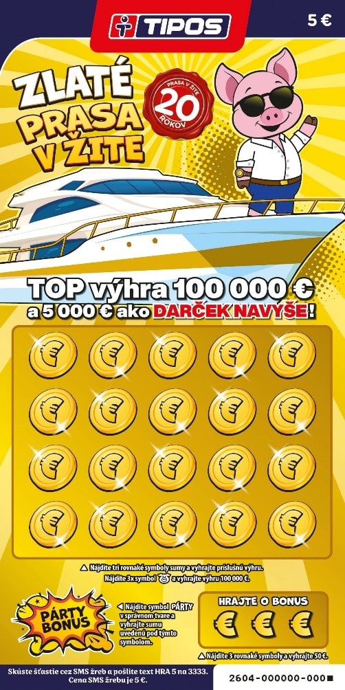Stierací žreb Zlaté prasa v žite od Tipos ti ponúka šancu vyhrať až 100 000 € za iba 5 €. Skús svoje šťastie a možno práve ty sa staneš majiteľom veľkej výhry! Viac