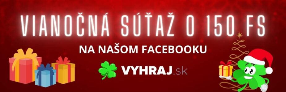 Súťaž končí 22. 12. 2025 o 12:00 a výhercovia budú oznámení do 24 hodín v novom príspevku na Facebooku. Odmeníme troch vyžrebovaných 50-timi free spinami v hodnote 0,10€ každý. Táto súťaž je určená iba pre slovenských občanov.