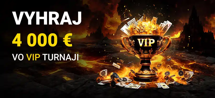 Vyzývame ťa k účasti na vzrušujúcom turnaji plnom zábavy, adrenalínu a šancí na výhry až do výšky 4 000 eur pre víťaza – čiže pre teba! Priprav si svoje zručné prsty, hraj obľúbené hry a získavaj body už od začiatku VIP turnaja! Online casino Fortuna rozdeľuje fantastický balík odmien v hodnote až 30 000 eur medzi najlepších hráčov. Turnaj odštartoval v pondelok 15. januára a vzrušenie potrvá až do nedele 21. januára. Staň sa hviezdou turnaja a dosiahni na poriadne vysokú priečku s pomocou množstva bonusových bodov, ktoré počas VIP TURNAJA tečú prúdom! Tak poď do toho!